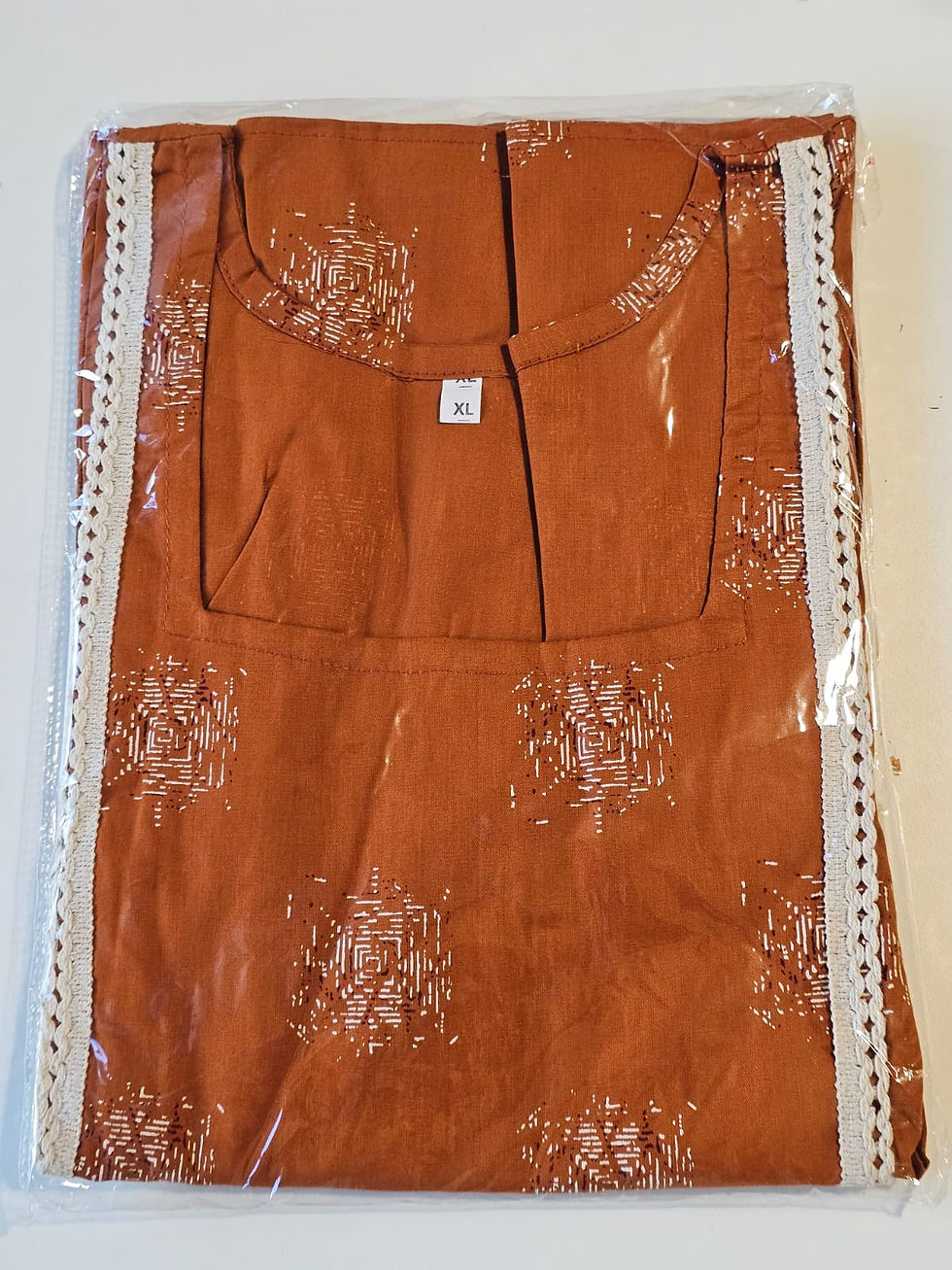 Mango Design Ajrak Feeding Frock Nighty With Double Sided Zip